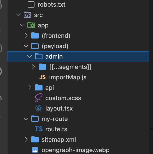Ada juga yang tidak kalah penting di attibute admin ini adalah importmap. Fitur ini memungkinkan Payload untuk mengimpor atau menyuntikkan komponen React dari luar sistemnya. Dengan ada nya fitur import map ini, maka developer akan mudah melakukan modifikasi tampilan admin control panel tanpa mengubah kode sumber PayloadCMS. Karena payload akan melakukan injeksi react component kepada sistemnya, maka payload harus tahu dari file mana dia harus melakukan injeksi kepada sistemnya. Sehingga jika kalian melihat pada direktori di bawah ini, maka akan ada file importMap.js